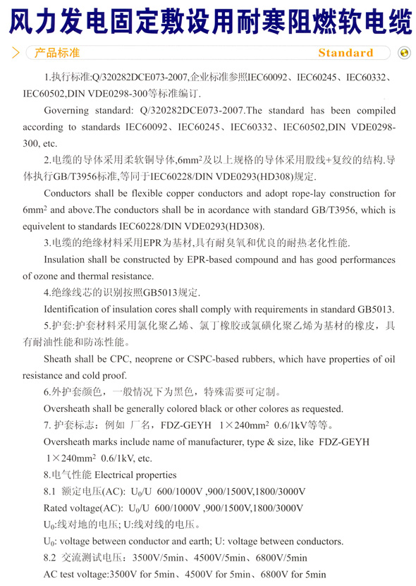 風力發電移動用耐扭耐寒阻燃軟電纜